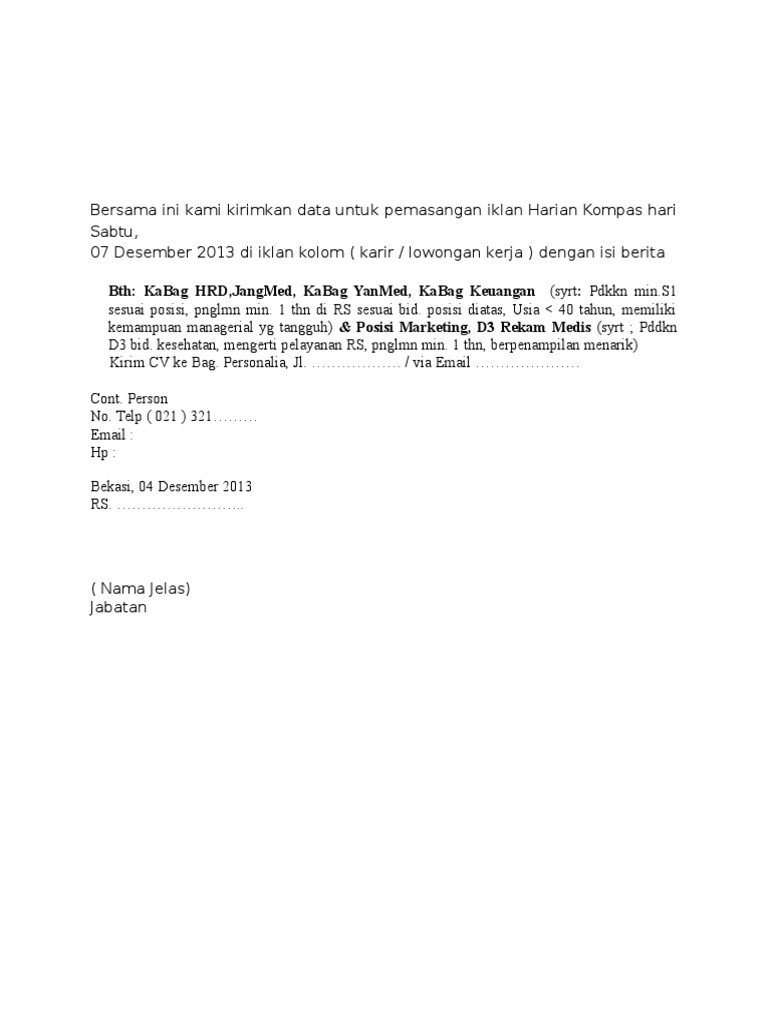 H1 Lowongan Kerja Kompas H1 from 2.bp.blogspot.com Lowongan kerja mitra kurir mobil syarat pendaftaran : Lulusan sma smk d3 s1 semua jurusan lowongan bank bumn cpns terlengkap dan terupdate dari sumber yang terpercaya. Sistem hari kerja di indonesia masih beragam. Angka pengangguran yang semakin bertambah setiap tahunnya disebabkan karena minimnya lapangan pekerjaan. Barikut iklan lowongan kerja yang dimuat di koran kompas sabtu 22 juni 2013. Jayapura, kompas — sekitar 1.200 pekerja pt freeport indonesia pada area kerja pertambangan terbuka di grasberg, distrik tembagpura. Salah satu syarat registrasi yaitu harus mempunyai email. Lihat lowongan kerja di jora.